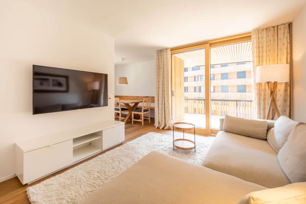 Die 3,5-Zimmer-Ferienwohnung ist für bis zu 4 Personen geeignet und bietet zwei Schlafzimmer.